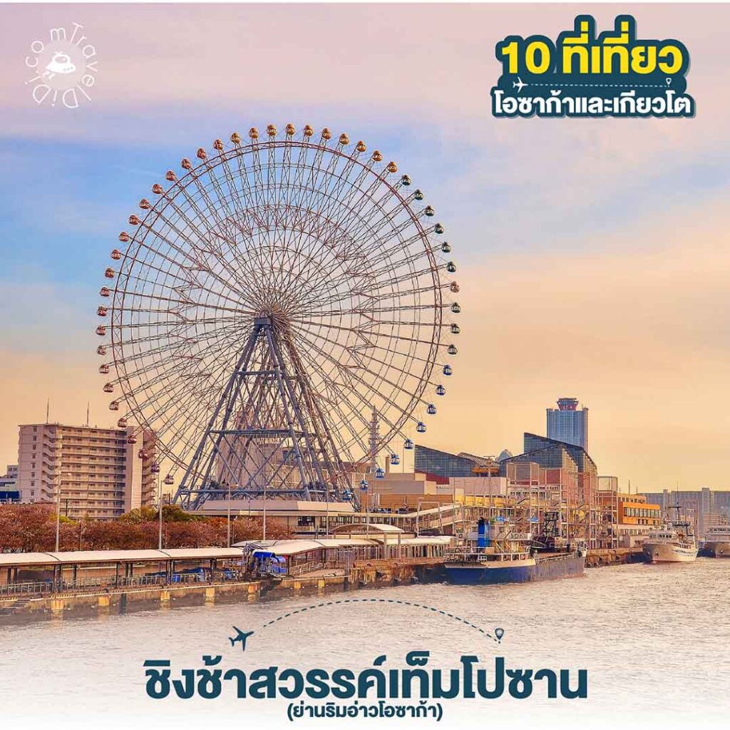 ที่เที่ยวโอซาก้า 2025 สุดอลังการ ต้องมาถ่ายรูปสักครั้ง! กับชิงช้าสวรรค์ ‘Tempozan Giant Ferris Wheel’ ขนาดใหญ่มหึมาที่มากับความสูงถึง 112.5 เมตร ตั้งอยู่ขนาบข้างริมอ่าวโอซาก้าอันกว้างใหญ่ แถมยังเคยได้ชื่อว่าเปนชิงช้าสวรรค์ที่ใหญ่ที่สุดในโลกในปี 1997! ถือว่าเป็นจุดที่สามารถชมวิวทิวทัศน์ของเมืองโอซาก้าแบบพาโนราม่ารวมถึงการแสดงแสงสีในตอนกลางคืนได้สวยที่สุดแห่งหนึ่งเลย ยิ่งช่วงพระอาทิตย์ใกล้ตกที่สวยมากเป็นพิเศษ