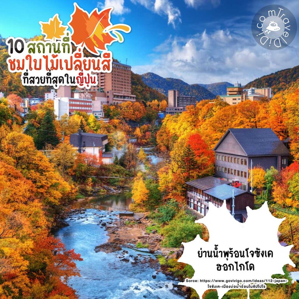 อีกหนึ่งสถานที่ชมใบไม้เปลี่ยนสีที่สวยที่สุดในฮอกไกโด ประเทศญี่ปุ่น ประจำปี 2025 / 2568 ที่แนะนำต้องจดไว้ในลิสต์ คือ ย่านโจซังเคออนเซ็น (Jozankei Onsen) โดยสถานที่แห่งนี้เป็นจุดชมใบไม้เปลี่ยนสีที่สวยงามและสดใสตัดกับภูมิทัศน์ของแม่น้ำโทโยฮิระที่ไหลผ่านบริเวณรีสอร์ทออนเซ็น และอุณหภูมิที่แตกต่างตัดกันที่เกิดขึ้นบริเวณหุบเขาแห่งนี้ ที่นี่ได้รับความนิยมอย่างมากจากชาวซัปโปโร เพราะเป็นสถานที่ชมใบไม้เปลี่ยนสีที่มาพร้อมกับธรรมชาติที่สวยงามในราคาที่พักที่ไม่แพง คุณสามารถชมใบไม้เปลี่ยนสีผลัดใบสีเหลือง ส้ม แดง ทอง งดงามตระการตาได้ ณ สถานที่แห่งนี้เลยค่ะ